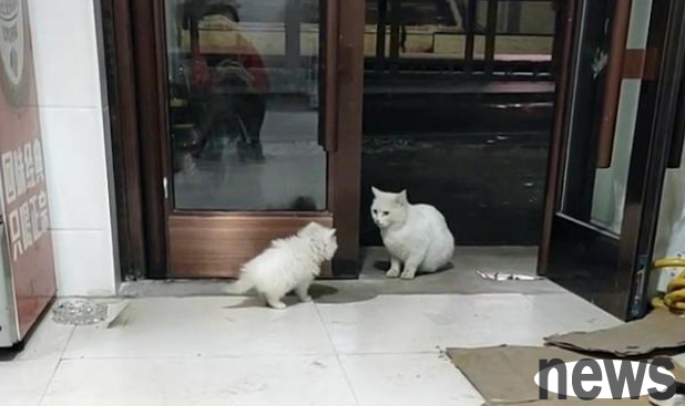 Following the smell, the cat mother found the supermarket closest to her. After that, she stayed at the supermarket entrance every day. Grandma Cat would occasionally follow the cat mother to wait.