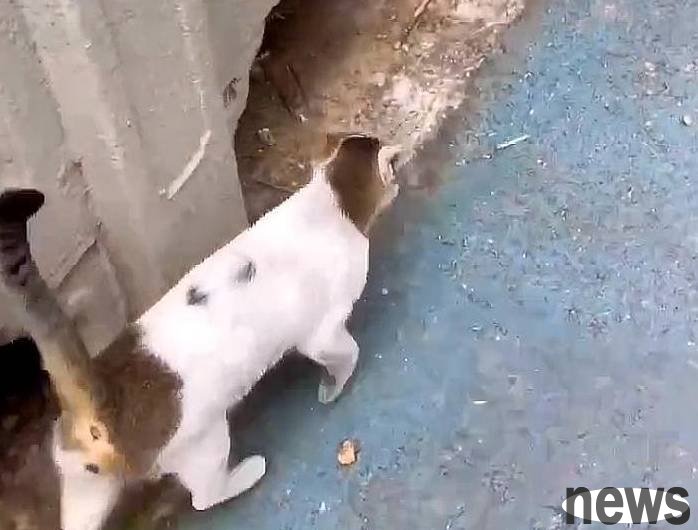 When the stray cat saw the shit shovel looking at it, it hurriedly meowed all the way over. When it got to the shit shovel, it continued to meow at the shit shovel, and the cry was very urgent.