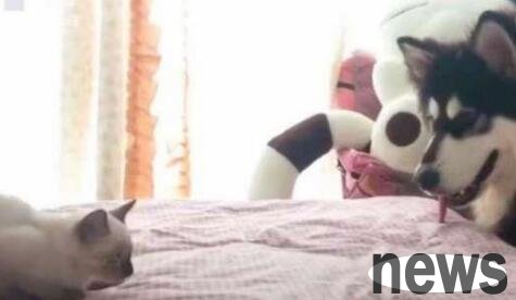 A netizen has a Erha at home. It is very energetic every day and always loves to pester it. However, it is also true that it loves to make trouble and always bites the owner's trouser legs. A friend of a netizen was going out that day and wanted to bring his cat over to be raised. The netizen heard it wonderfully. He had been pestered by Erha for a long time anyway and could get along with the cat. But who knew that not long after he brought the cat over, Erha's eyes were already fixed on the cat.