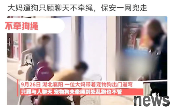 On September 26, an aunt in Xiangyang, Hubei Province took her pet dog out for a walk. She only talked with others. The pet dog did not have a leash and ran around everywhere, but she did not care. Upon seeing this, a security guard picked up a net...