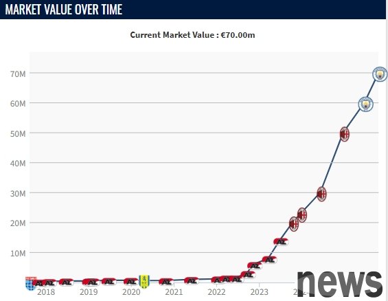 Reinders, who joined Manchester City for a transfer fee of 55 million euros this summer, is worth 10 million to 70 million euros.