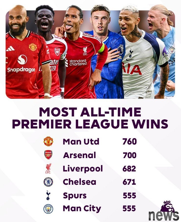 In this round of the Premier League, Arsenal defeated Crystal Palace 1-0 and achieved the 700th Premier League victory in team history. The following is the historical win list of the Premier League: