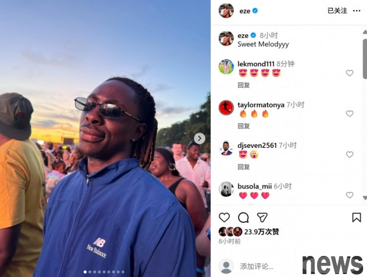 Arsenal player Eze posted a few casual photos on social media, looking very relaxed and comfortable. The caption read: "Comfortable rhythm."