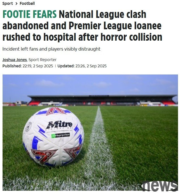 The Sun reported that two players from the National League (Fifth Division) collided with their heads and the game was directly stopped.