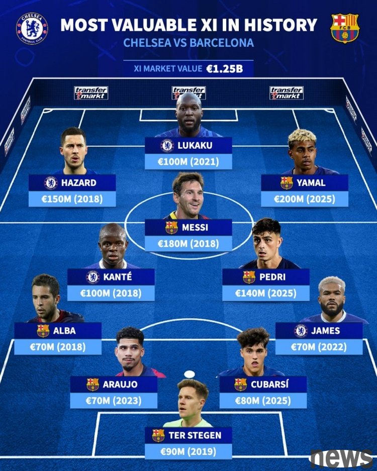Barcelona will play Chelsea away in this round of the Champions League. "Transfer Market" also listed the most expensive combination in the history of the two teams. The most expensive team in the history of the Barcelona Blues: Euro Forwa...